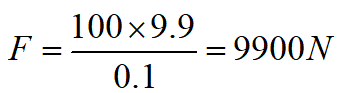 假設一個質量為 100 kg 的物體從 5 米高處落下,停止時間為 0.1 秒:
